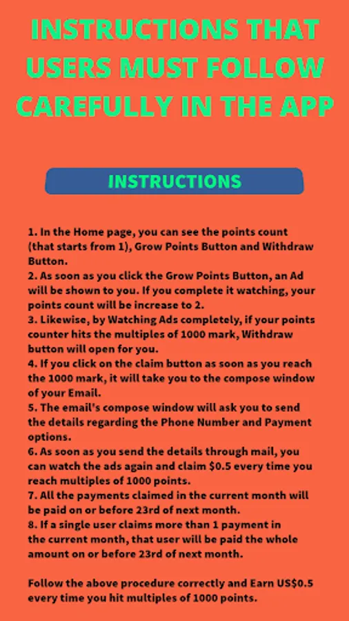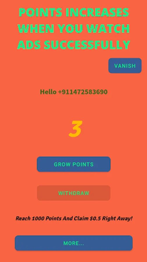 Corbes functions by showing ads to the users to earn money. The points counter in the home screen of the app starts from 1. A user is required to watch ads by clicking the earn point button on the home screen. When this process is complete, the points will increase to 2. Likewise, if a user hits multiples of 1000 points then that user can claim US$0.5 through a flexible mode of payments (UPI/ Phone Pe/ Google Pay/ Bank Account/ PayPal[For International Users Only]). There are no limitations for earning through this app, any user can earn as many times by reaching 1000 points successfully. A reset button is provided after successfully accomplishing the target in this app. The app is available in any country around the Globe irrespective of location.