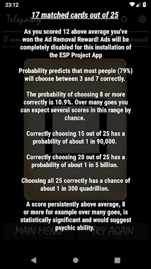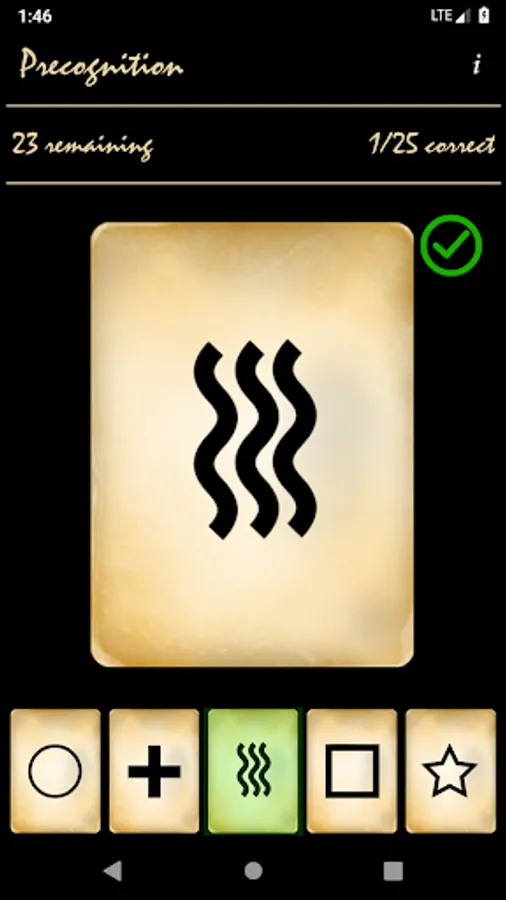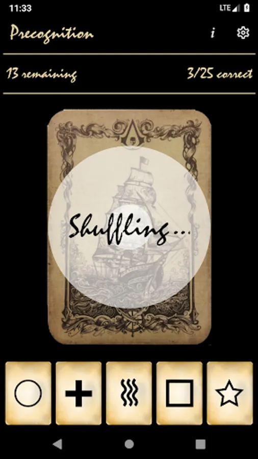 In Retrocognition mode all 25 cards are randomly preselected up-front. You must concentrate on each card and attempt to choose the card which matches the pre-selected card.