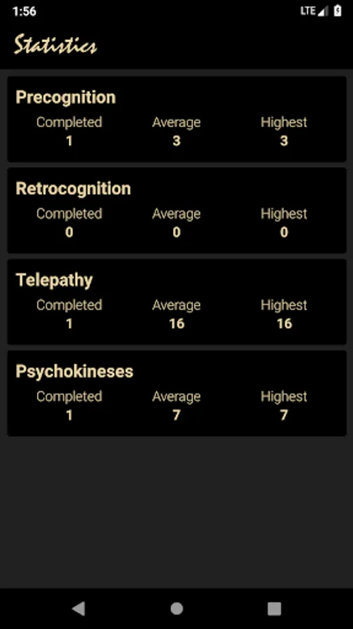 In Psychokinesis mode you must concentrate on a card for a suitable period of time and only after you have made your choice will a card be chosen at random. This is very similar to precognition with the subtle difference that you must try use your will to affect the outcome rather than try to predict the outcome.