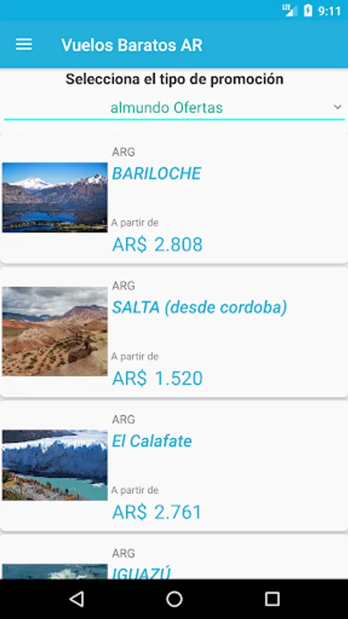 With this application you'll be able to receive all notices of promotions airline tickets. Download it and do not miss any promotion.