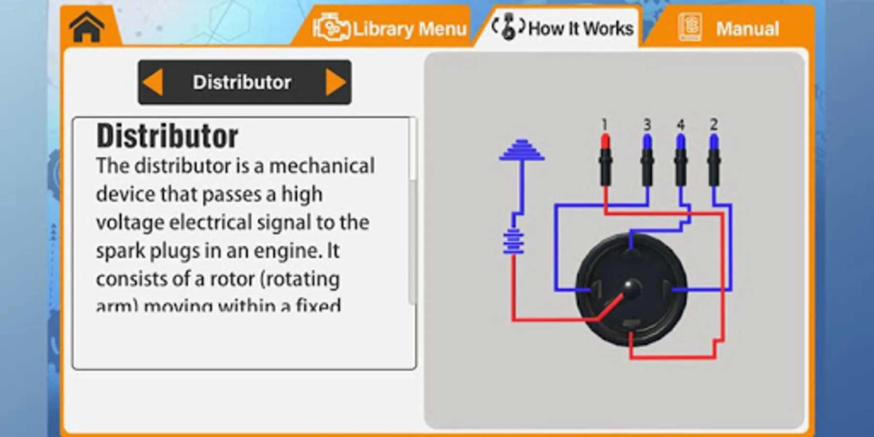 Use your finger to rotate the images and animations on your smartphone to explore and learn about the various parts and functions of the engine. The glossary of engine parts includes an image of each, as well as a full written description.