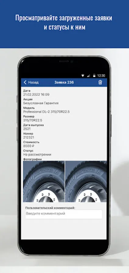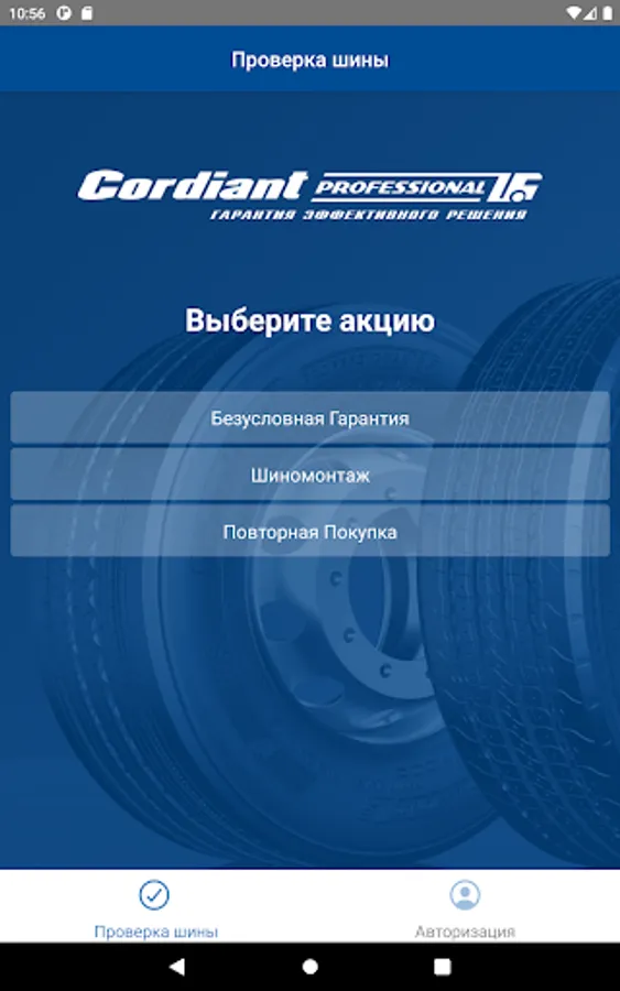 The mobile application is intended for the operation of the Cordiant dealer network for service programs that apply to all-steel truck tires of the Cordiant Professional brand.