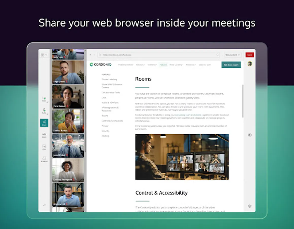 We are all about secure, enterprise business collaboration. Having complete control and privacy in video collaboration is critical in today’s global remote work environment. Cordoniq is built for easy and seamless integration with enterprise-level functionality.