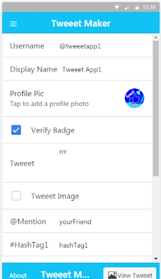 This app is made just for fun. Fake tweet can be used to make your funny tweets to prank your friends