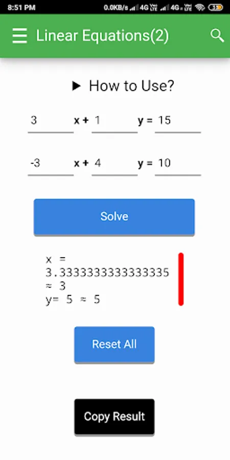 - Solving Linear Equations with 2 variables
