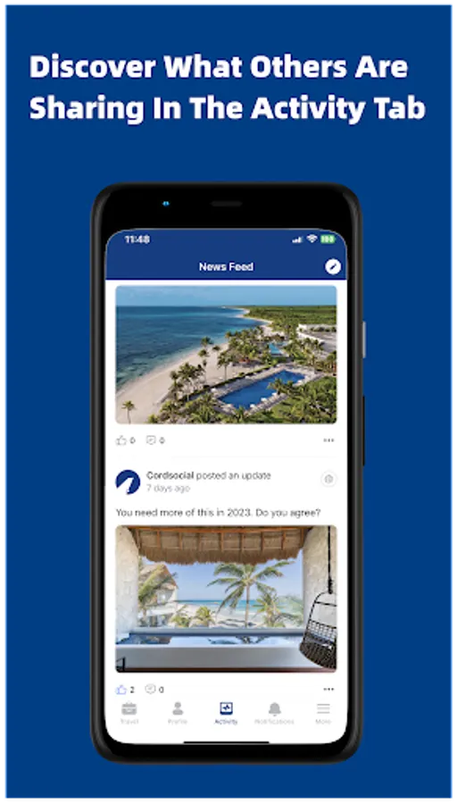 Unlock FREE Vacations by accumulating travel points when interacting with the platform (Example: Add a post at least once a week and get rewarded with 5 travel points)