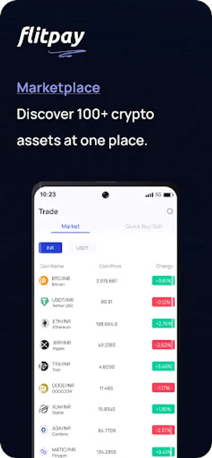 Flitpay is a Cryptocurrency marketplace in India. You can Buy and Sell Bitcoin, Ethereum, Ripple, and many more in India using Flitpay Cryptocurrency Exchange App. You can easily deposit INR using IMPS/UPI.