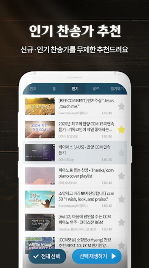 - With the Favorites function, you can separately manage only frequently listened hymns.