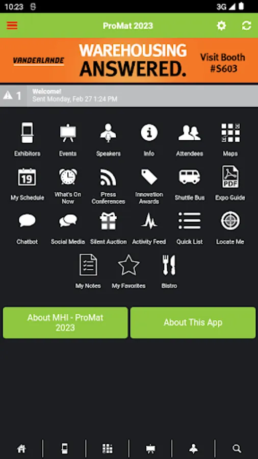 Download the ProMat 2023 mobile app to quickly view exhibitor information, a schedule of events, conference sessions and speaker information, and a map of the show floor.