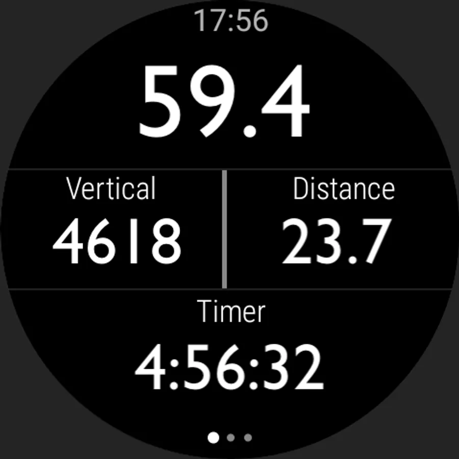 Displays Live - Max Speed, Distance, Vertical and Duration.