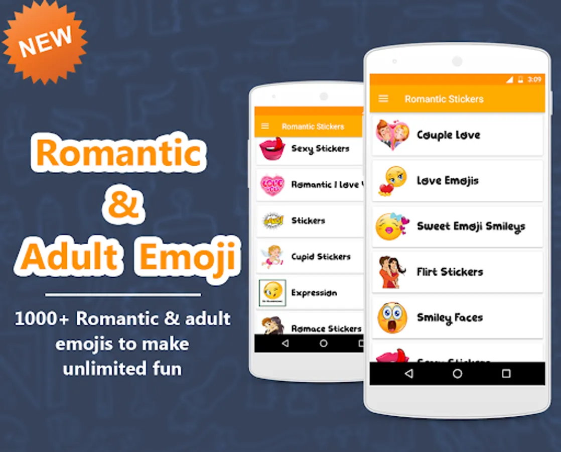 Romantic Stickers & adult - dirty emoji Pack is an application which provides adult emojis, romantic stickers, flirty emojis, textual stickers, dirty emoji, naughty emojis, nasty emojis and smiley for making your texting too romantic.