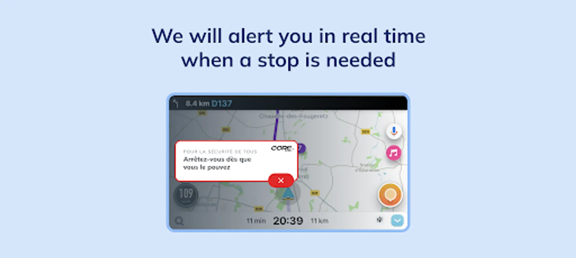 The app will help users to plan for convenient breaks to limit driving fatigue.