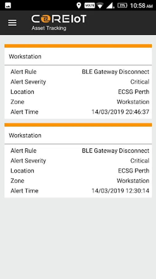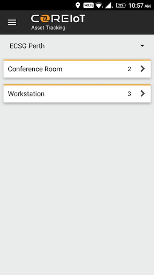 The COREIoT Asset Tracking app allows you to view the current location of your assets.