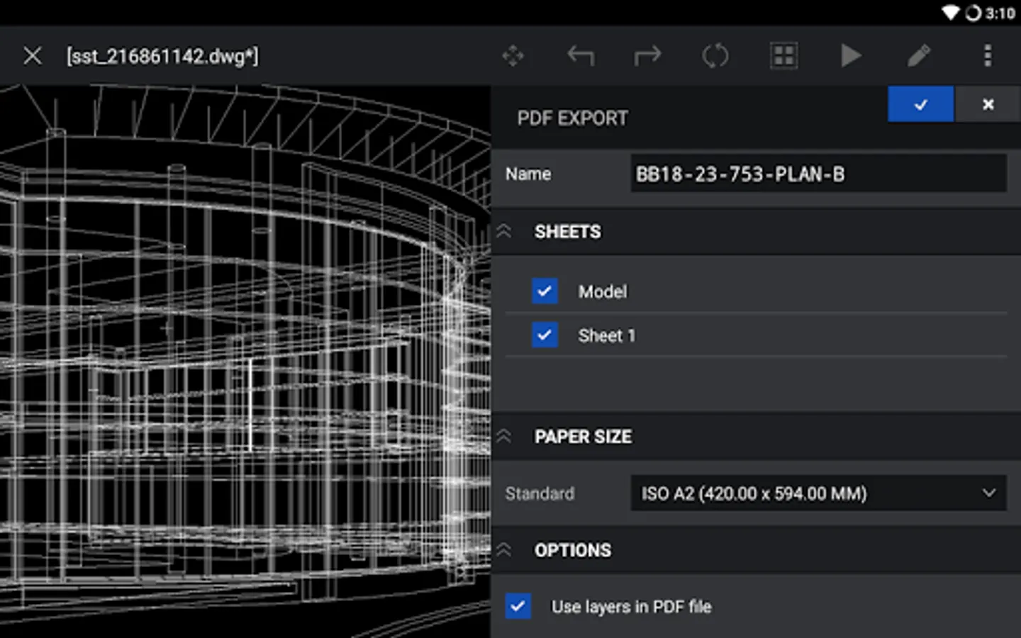 Choose a monthly or annual subscription to benefit from a full set of 2D drawing, editing and 3D viewing tools and advanced annotation and output capabilities on all your Android devices. Here are a couple of options: