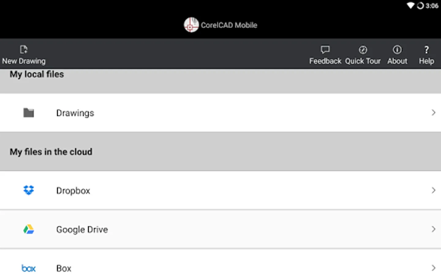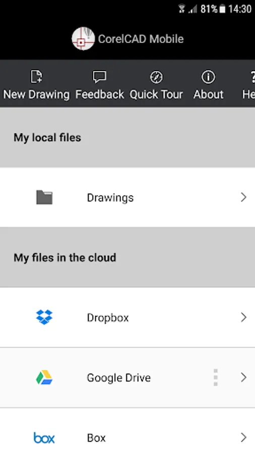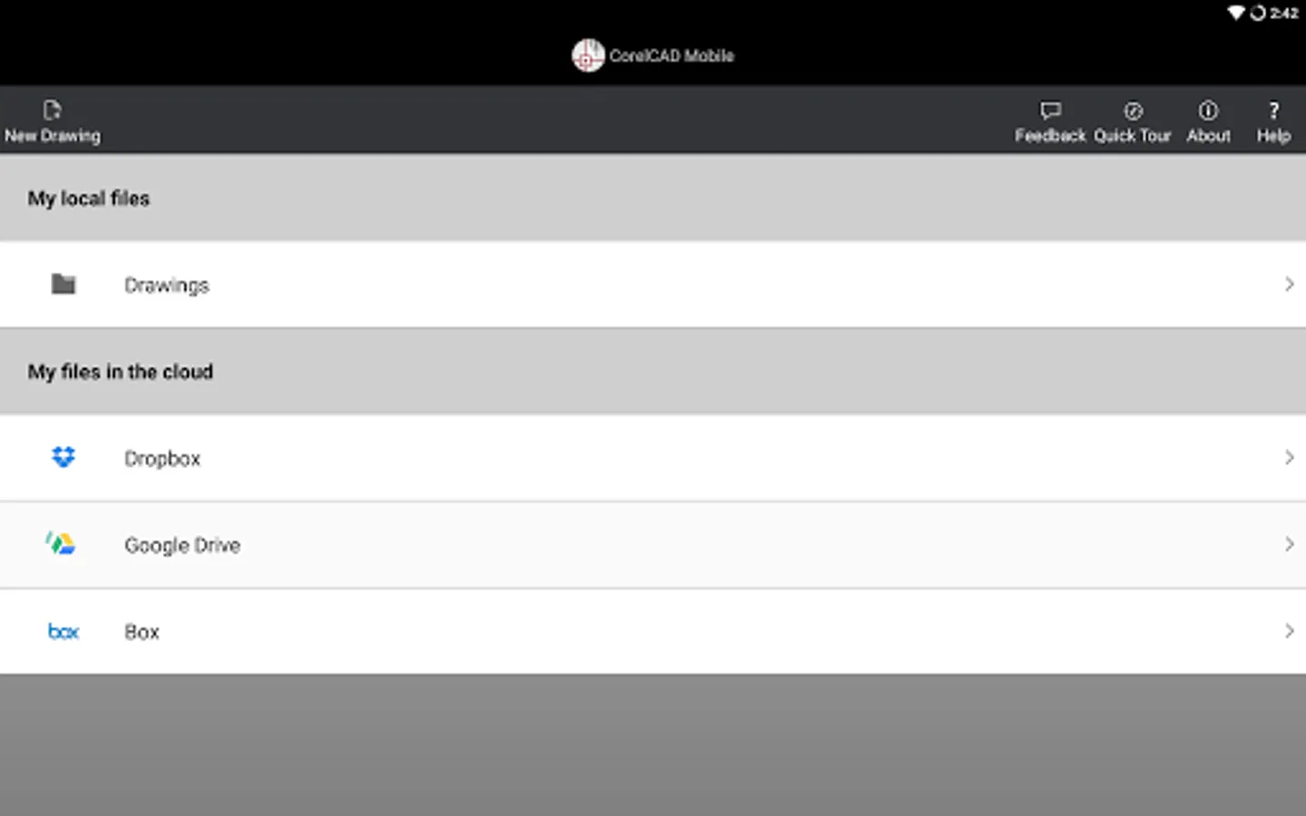 Share the files you’ve created with CorelCAD or any .DWG CAD software on your desktop or laptop with CorelCAD Mobile. To gain access, simply use Box, Dropbox or Google Drive to synchronize your drawings in the cloud or store drawings locally on your device.