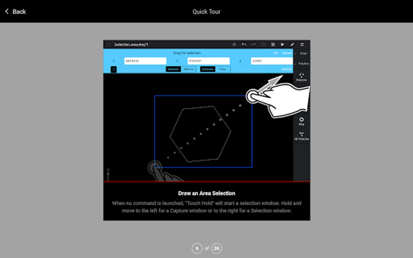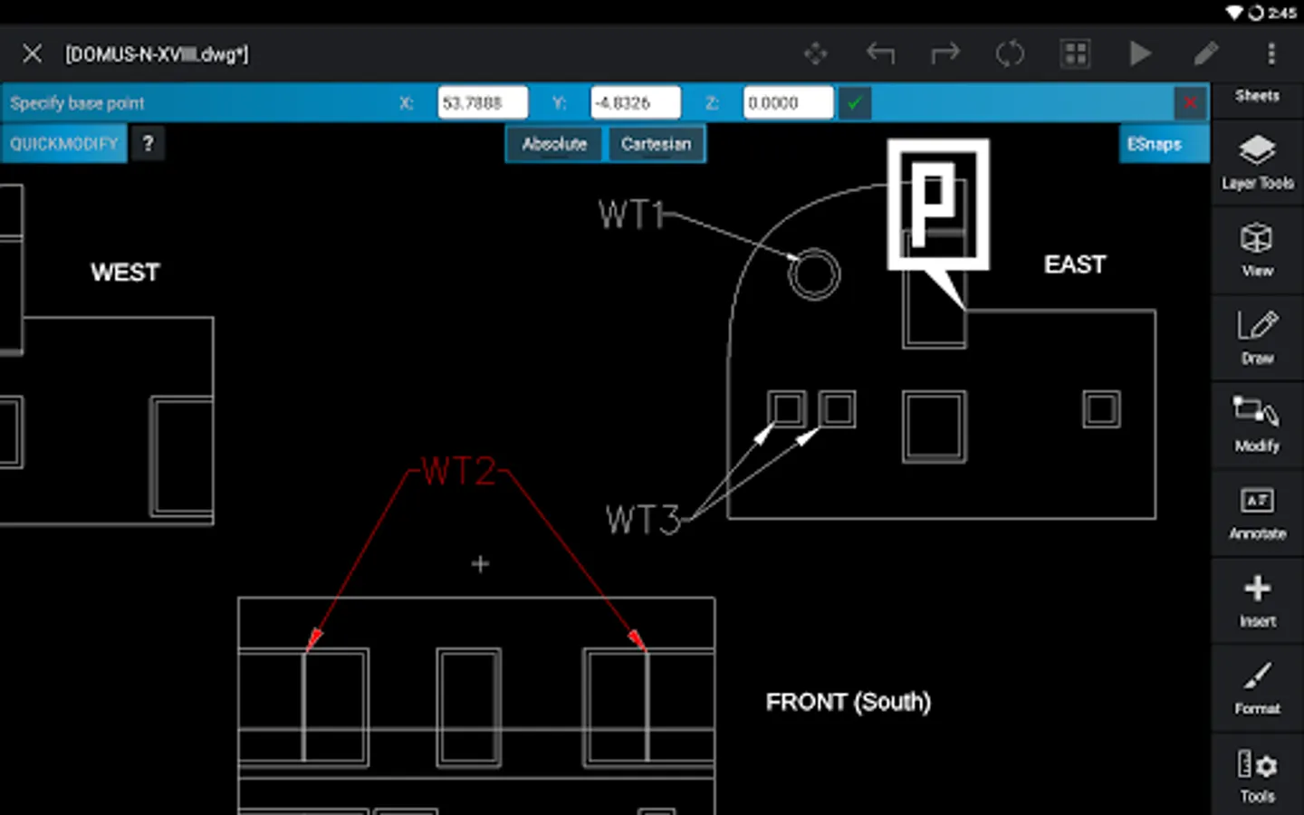 Find all the tools you need to make immediate changes or fixes with the 150+ drawing and editing features* in CorelCAD Mobile. The 2D tools will help you create or modify your drawing* within an interface that’s been optimized for touch and high precision.