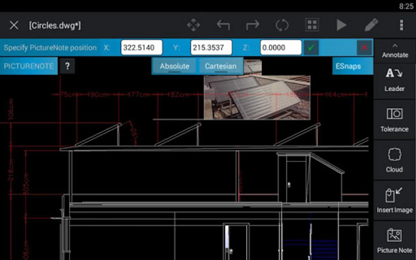 Add, change or edit important project details on-site, such as confirming measurements, revising key data or including text notes. With the unique annotation features, PictureNote* and VoiceNote*, you can take a picture from the camera of your mobile device or record your voice and pin the recorded note to the right place in your drawing.