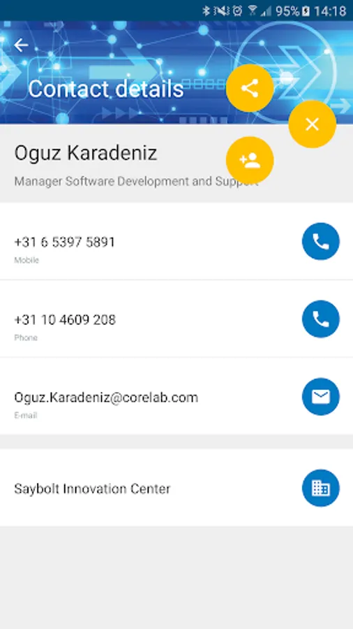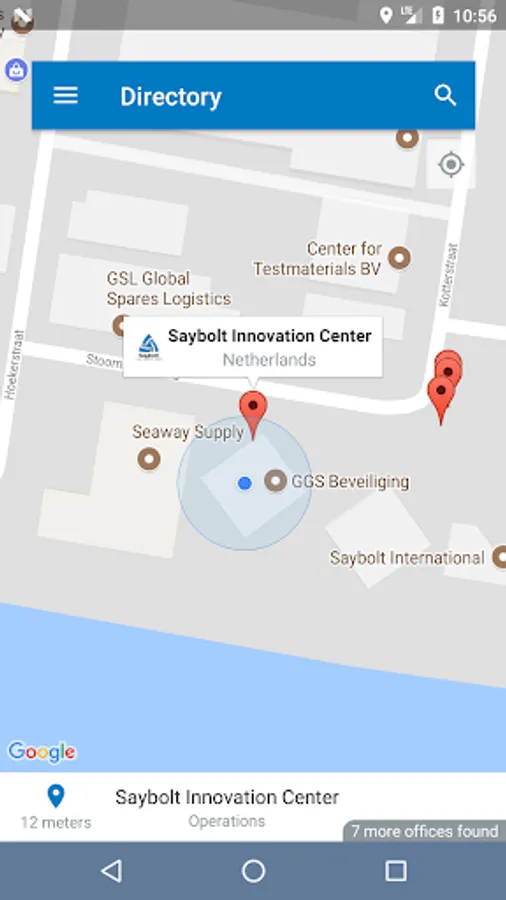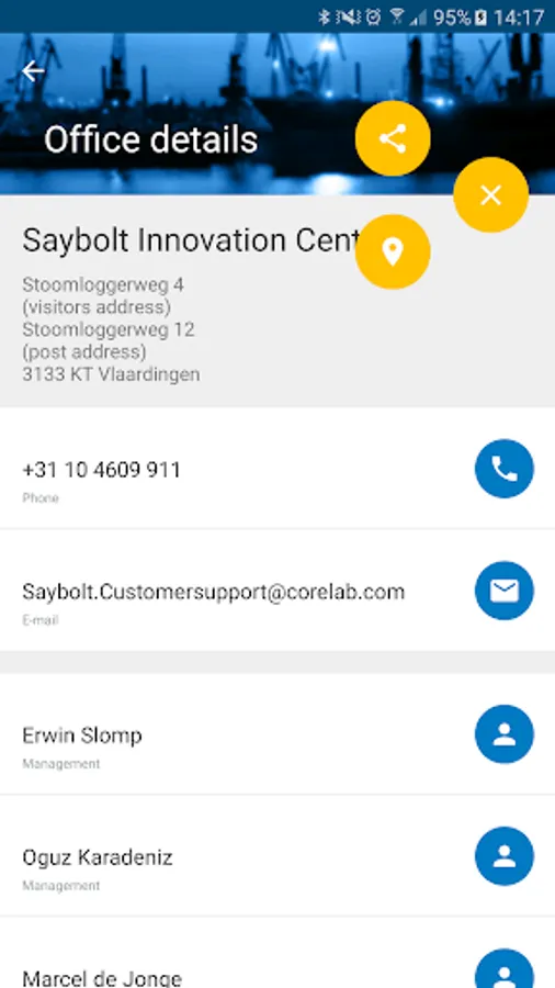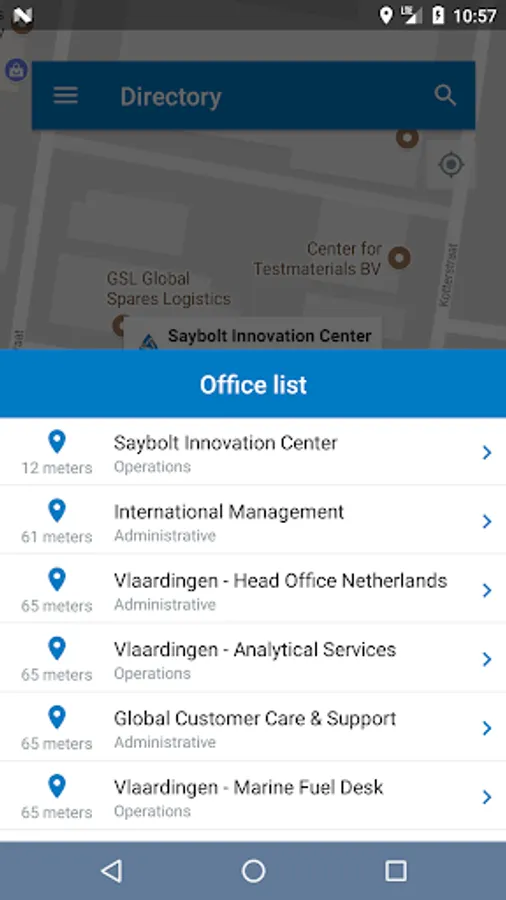 This application allows users to conveniently and quickly explore the worldwide network of Saybolt. Users can find where Saybolt inspection offices and testing laboratories are located, close to or at the spot where their services are needed. They can select Saybolt contact persons in the location of interest and access them directly by phone or by e-mail.