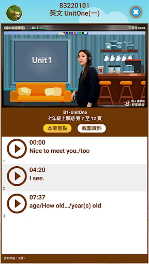 4. This program is only the content of the "trial version" teaching material, and the "cloud server" does not retain any "learning records" or "note content" data of the user.