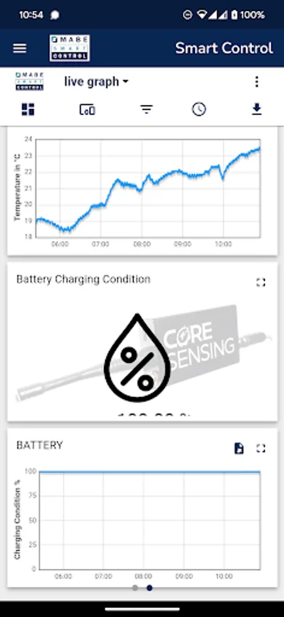 - Monitoring of current and historical sensor values (historical values via the MABE Smart Control Cloud)