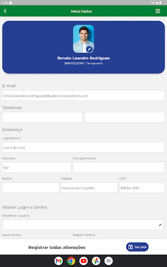 Within the application "Clube de Tiro Caça e Pesca Caramuru" it is possible to view the card of the