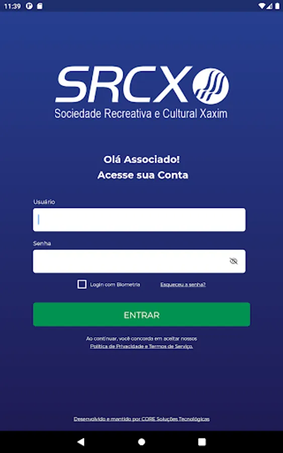The SRCX - Sociedade Recreativa e Cultural Xaxim App is an application for interaction and provision of services between associates. With this App, members can access the main services offered by the association: digital card, financial monitoring, registration updates and much more.