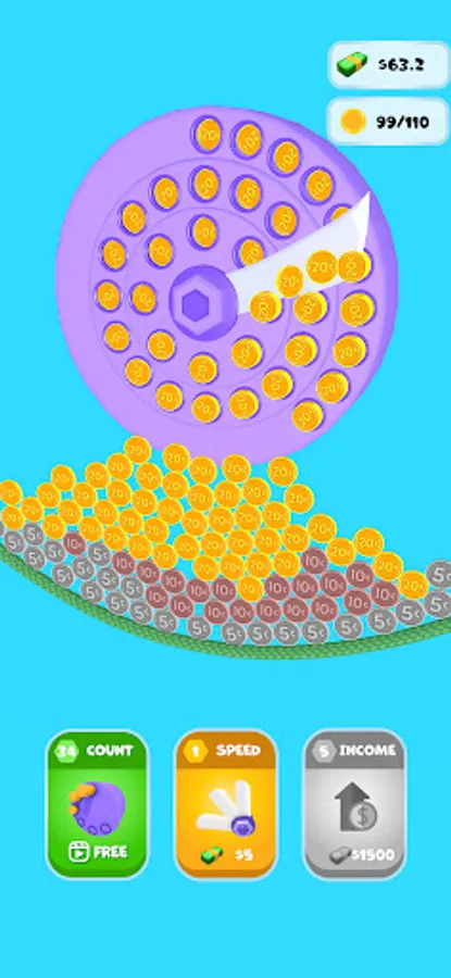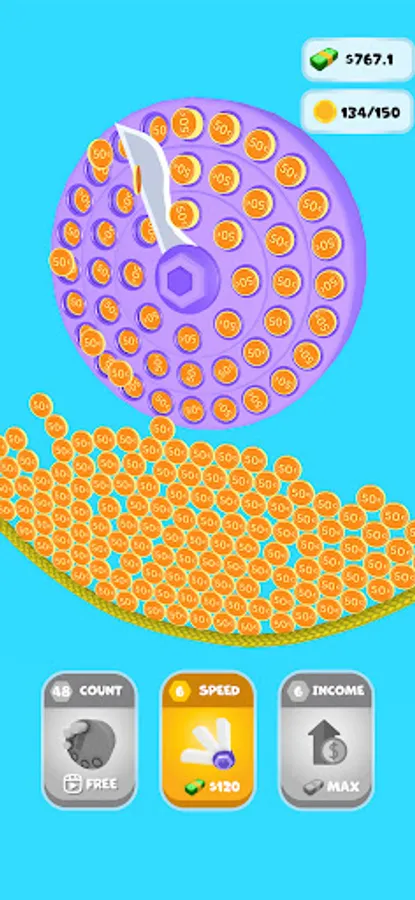 Cut the coins coming out of the machine and earn to income. Open new coin slots with your winnings and increase your coins. Keep moving forward with the hypnotic effect and improve your machine even more to generate coins!