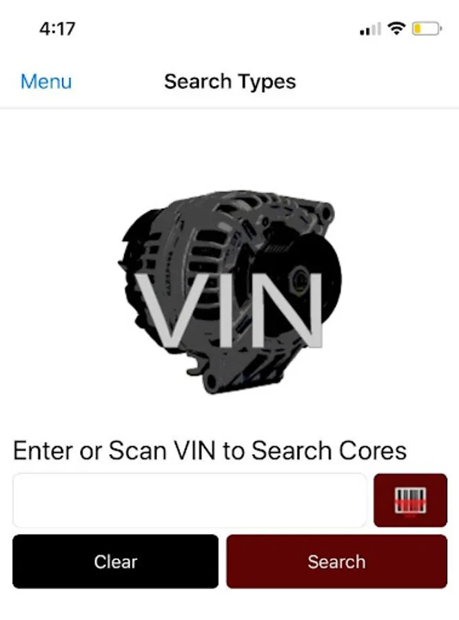 2. CORES - Users can enter or scan VIN barcode to view core parts that we are purchasing. Users can use the Core features without processing airbags. Users are pre-screened before access is granted to use the App for cores.