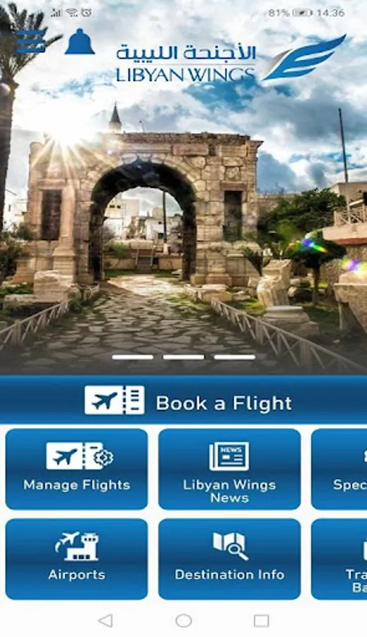 The first Libyan aviation mobile app provided by Libyan Wings Airline. Fully dynamic, supports three languages (AR, EN, FR), provides various types of services, book and manage your tickets, lost and found baggage, news, offers, passenger reviews, airports and more.