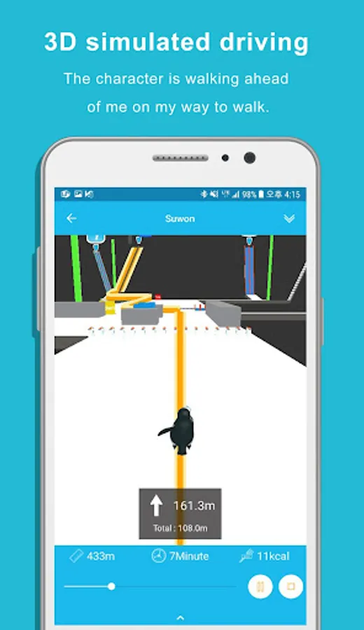 - Three-dimensional route guidance, simulated driving (distance, time, calories)