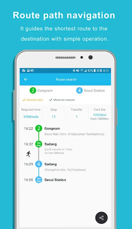 - Accurate timetable data using official data of Seoul Transportation Corporation