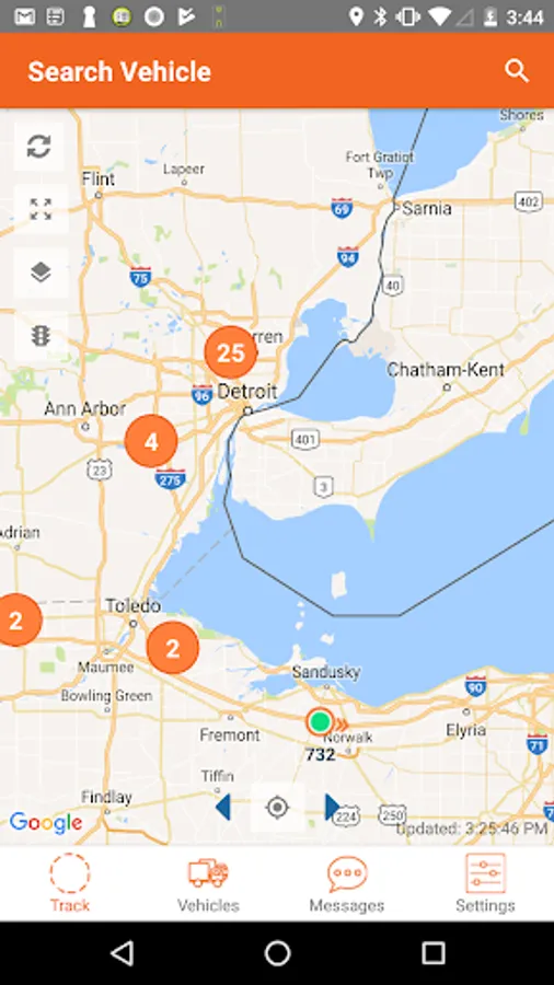 Android users can monitor vehicles on the tracking map to view their position, direction, speed and see which drivers are logged on at an time.