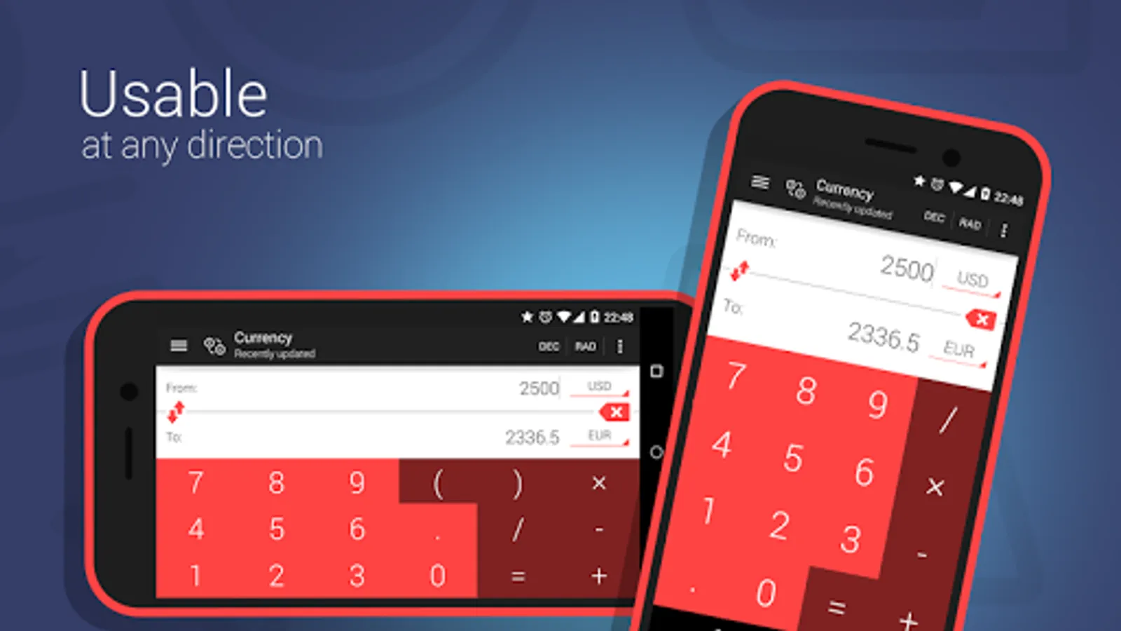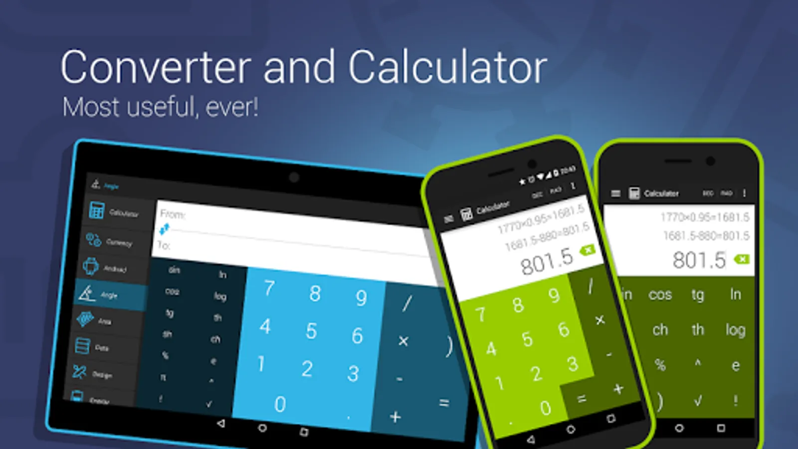 UseTool combines universal converter and efficient scientific calculator in one app and lets you customise the interface by your own taste. We tried to pick for you the most frequently converted categories and values so you don't have to switch between different apps to find an appropriate conversion.