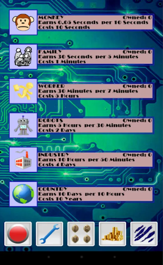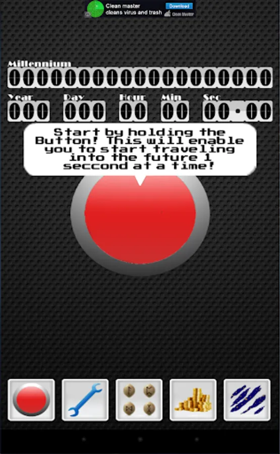 This game is very simple. Travel into the future as fast as you can by holding down the giant button. Once you have traveled forward in time, you can trade that time for power-ups so you can travel even faster!
