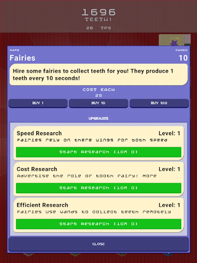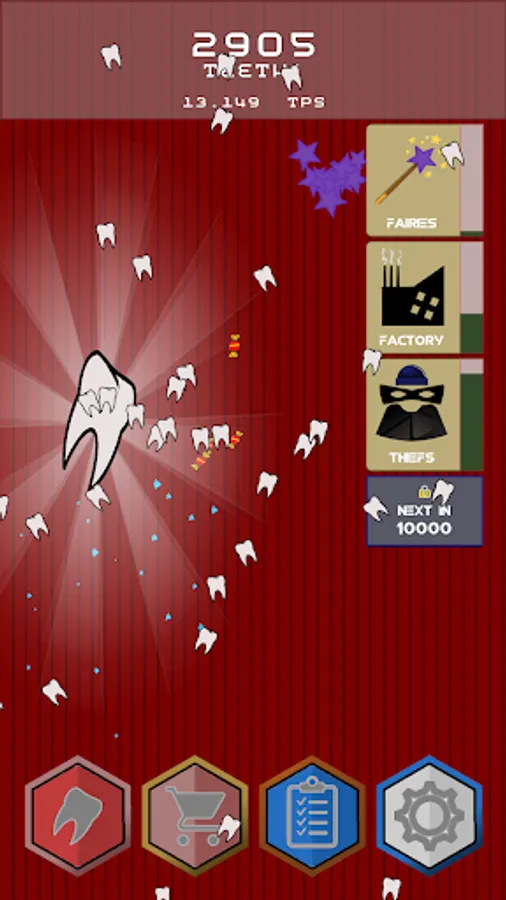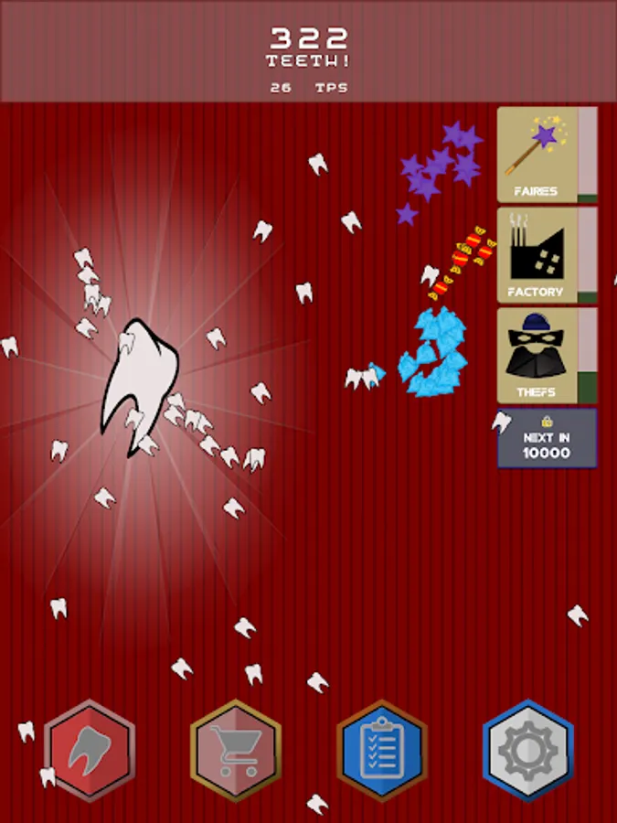 Tooth Collectors! Be prepared for some simple, addictive and fun entertainment! This game is very simple. Collect as many teeth as you can by clicking or tapping on the giant tooth as fast as you can. Once you have collected enough teeth, trade them in for power-ups so you can collect more teeth even faster!