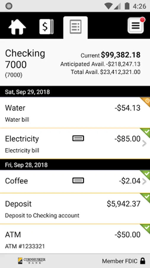 Cornhusker Bank does not charge a fee for utilizing Mobile Banking. However, your regular data and text messaging rates from your mobile device carrier will apply. The availability of certain features within business mobile banking are dependent on the services covered by your Depository Services Agreement. Visit Cornhuskerbank.com for more information and to watch our Business Mobile Banking video.