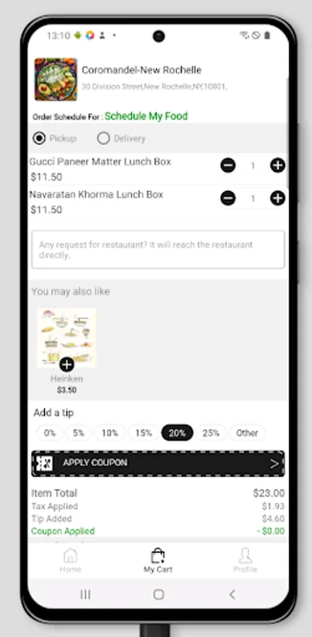 1. Get the Coromandel Online Order app and conveniently order from anywhere on your Android phone and tablet.