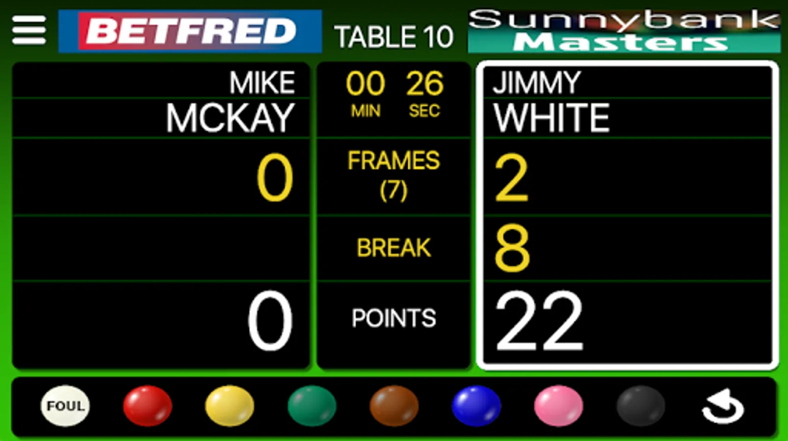 Easily keep track of the scoring in a snooker match.
