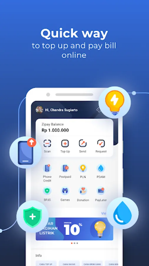 ZIPAY is Indonesia's digital e-money that can be counted on anytime, anywhere. With our mighty all-in-one app, you can safely make cashless payments for everyday needs such as offline purchases, mobile top ups, and bill payments.