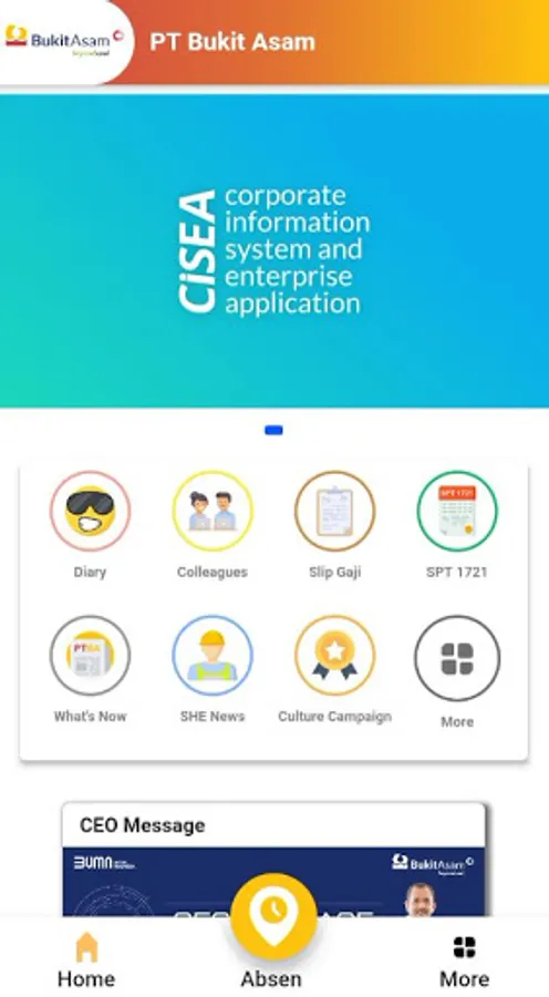 CISEA (Corporate Information System and Enterprise Application) is an application to support employee activities at PTBA (PT Bukit Asam) Assist