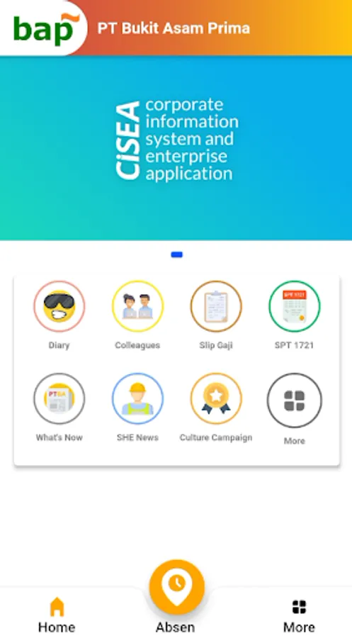 CISEA (Corporate Information System and Enterprise Application) is an application to support employee activities at PT BAP (Bukit Asam Prima)
