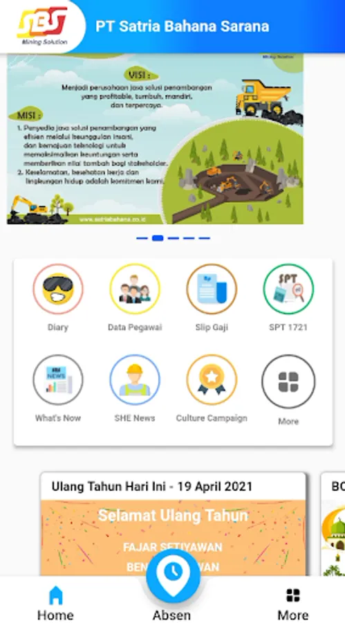CISEA (Corporate Information System and Enterprise Application) is an application to support employee activities at PT SBS (Satria Bahana Sarana)