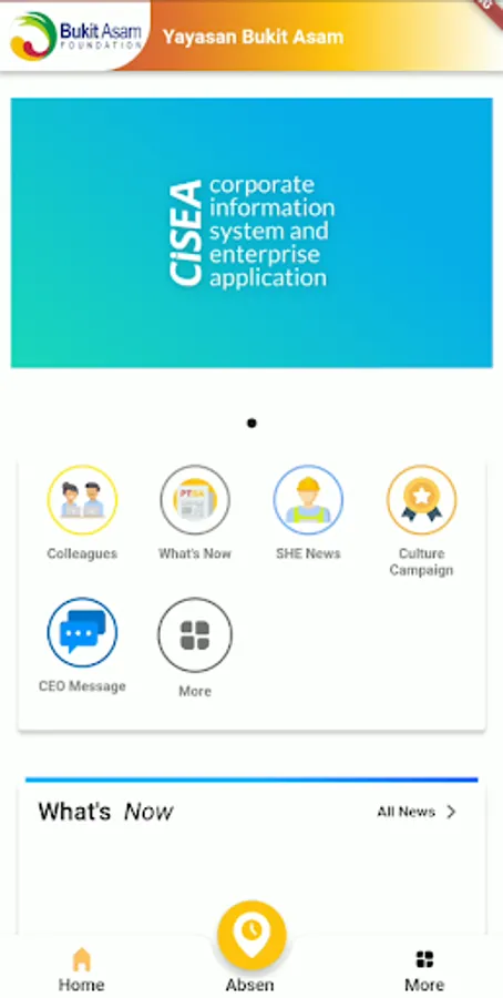 CISEA (Corporate Information System and Enterprise Application) is an application that supports employee activities at the Bukit Asam Foundation
