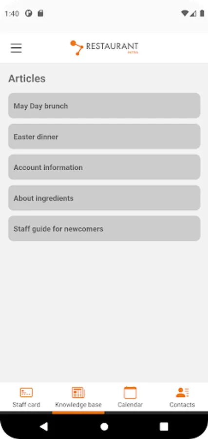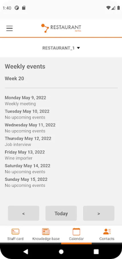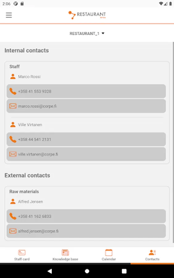 The Restaurantintra app allows you to access