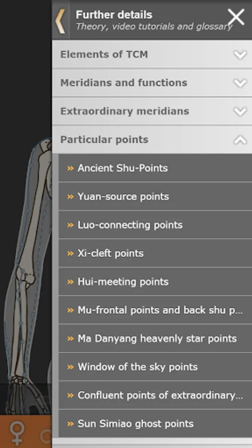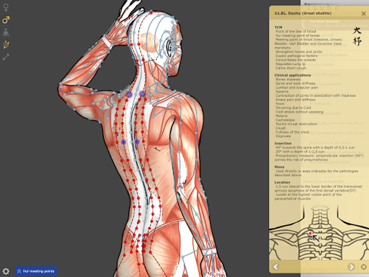 The light versione of TsuboMap™, the first App which allows you to study all the topics related to the Traditional Chinese Medicine using acupuncture points (tsubo) and energetic meridians. In TsuboMap™ you can view a three-dimensional mannequin (male or female), rotate it 360 degrees and choose the appropriate level to display the tsubo (skin, muscles and bones/organs).