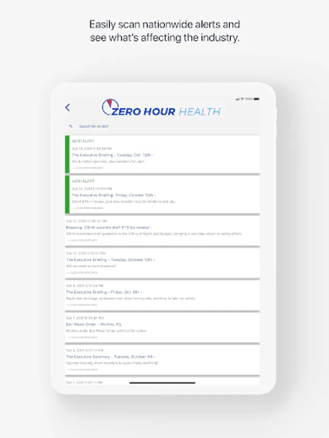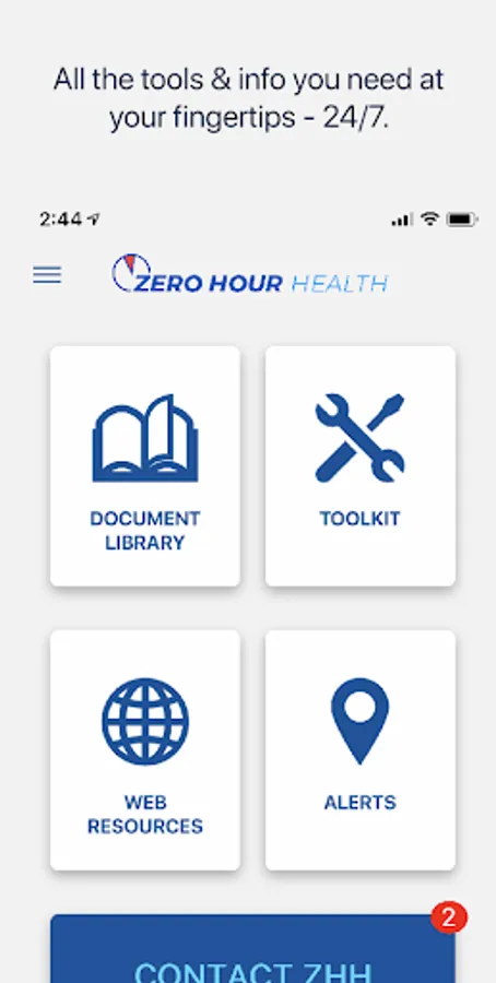ZHH Crisis Response offers health related content and interactive tools to clients of Zero Hour Health for use in addressing critical employee and customer health issues. Resources include a library of documents, alerts for issues in your area and a toolkit for responding to potential health crises. Clients can also reach the ZHH response team quickly, right from the app.