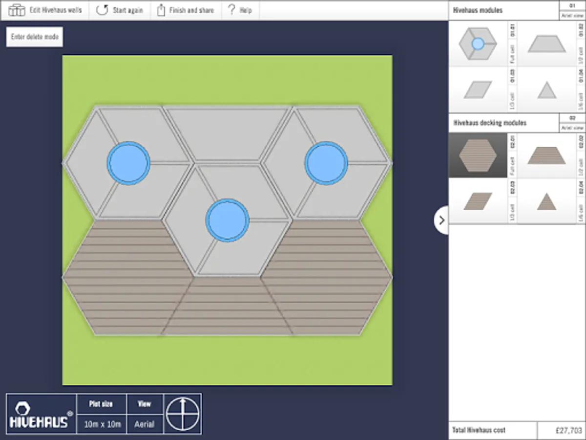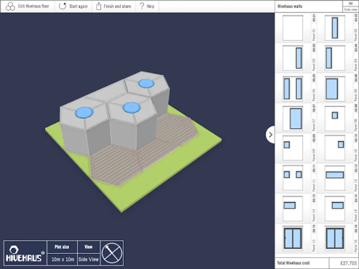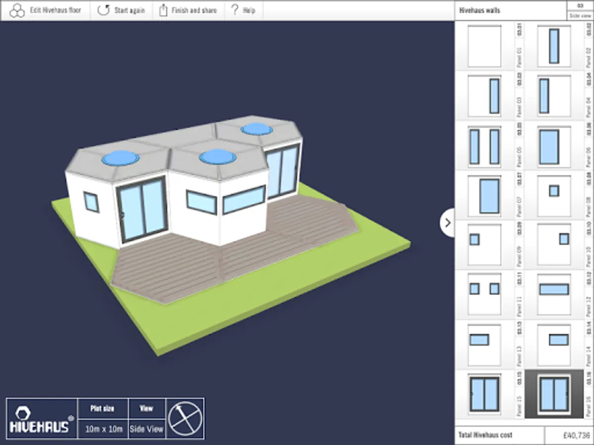 My Hivehaus is an intuitive configuration tool which allows you to design and configure your own dream HIVEHAUS®, whilst giving an indication of the cost involved. Please note this application is intended as a simple visual guide to help you understand the flexibility of our unique HIVEHAUS® modular living space system and is not intended as an offer of sale, for more information read our disclaimer or contact the Hivehaus sales team for more details -info@hivehaus.co.uk