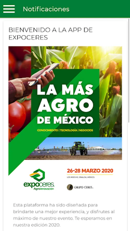 With this application you will have access to all the information you need to participate in this great expoceres event that is held annually by Grupo Ceres and its companies.