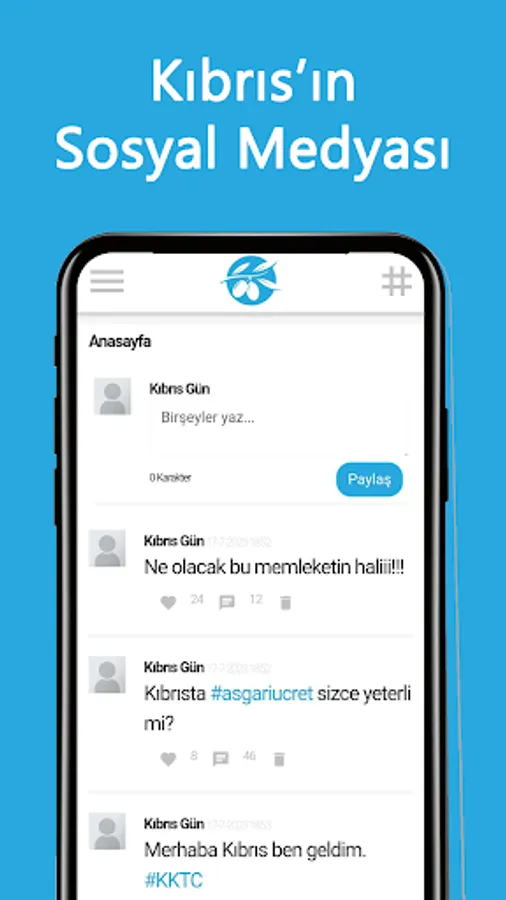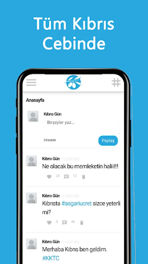 With Cyprus' social media application, all Cyprus is gathered in one place. Share your comments about the agenda with Cyprus with the Cyprus Day mobile application, where current news and instant events are discussed. TRNC last minute information instantly on the Cyprus Day application.