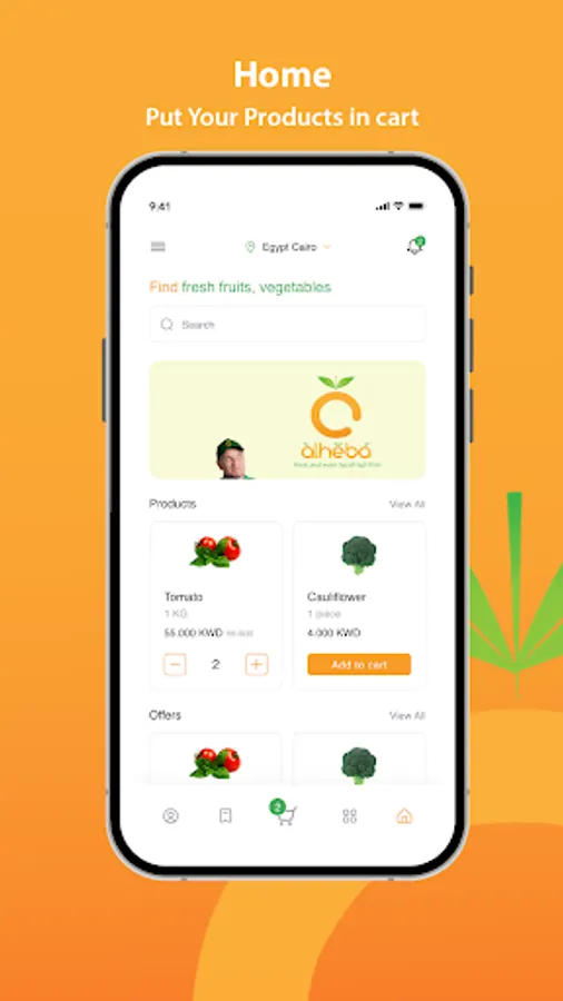 تطبيق خاص بشركة الهبة لتوصيل الخضراوات والفاكهة الطازجة والجاهزة المقطعة بالاضافة الي البقوليات والتمور والمواد الغذائية في دولة الكويت
